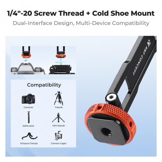 - * 【Allsidige fotograferingsvinkler】Cold Shoe-telefonholderen tilbyr 180° Z-akserotasjon og dobbelthengslet foldedesign for presis posisjonering. Ta landskap, portretter, bilder over hodet og mer med letthet, og sikrer stabilitet og presisjon hver gang.