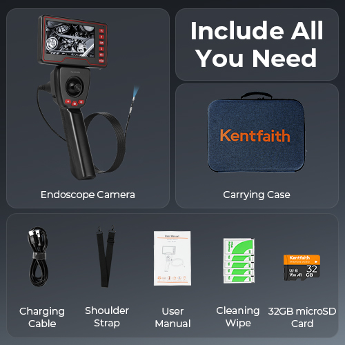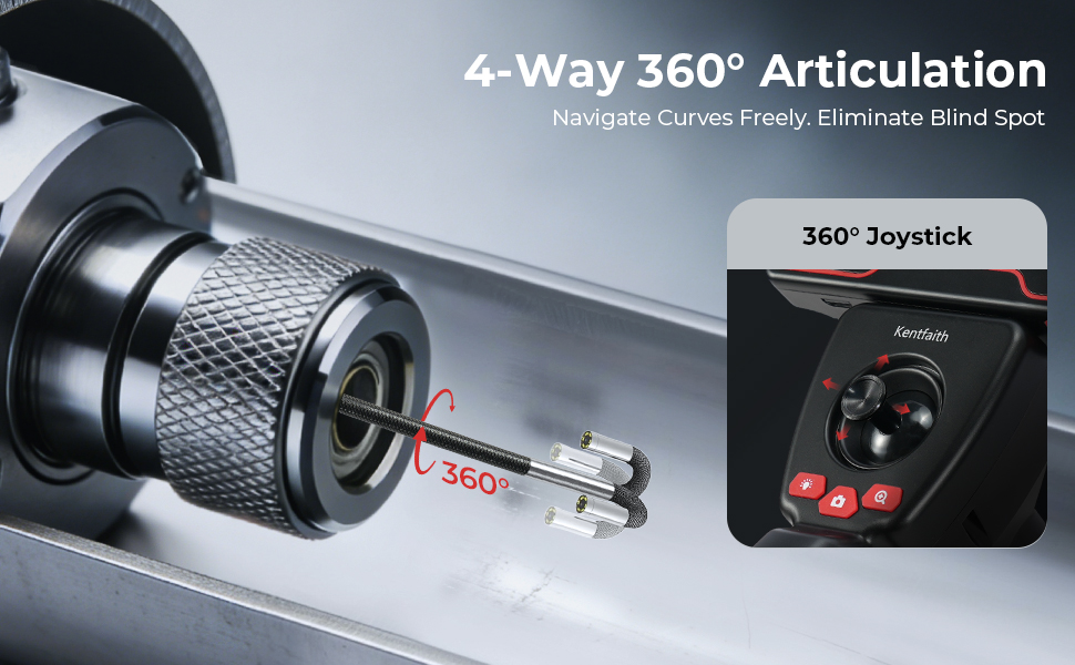- Engineered for professionals, KentFaith advanced articulating borescope features an ultra-slim 3.9mm probe with full 360° 4-way articulation, allowing you to navigate complex, hard-to-reach spaces with precision. Betalte med et høydefinisjonskamera, leverer det klart, detaljert syn. Perfekt for å inspisere automotive motorer, spark plugger, flyturbiner, nøyaktige maskiner, bygningsstrukturer, etc.