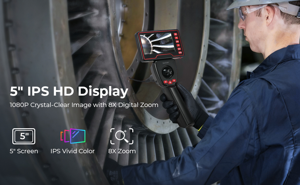 - * [5-inch IPS Screen & 8X Zoom] KentFaith inspection camera features a 5-inch color IPS LCD screen, delivering sharp, detailed image for accurate inspections. 8X digital zoom viser små crack og bær, mens 180 ° bilderrotasjon justerer utsikten din umiddelbart for investerte eller pinlig inspeksjonsposisjoner.