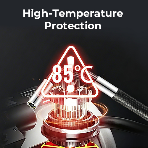 Når temperaturen når 85 °C/185 °F, advarer den bygde alarmen umiddelbart deg, så du kan reagere før endoskopskamerskaden. Hold deg beskyttet og arbeid med selvtillit - selv i varme motorer eller andre høytemperatur miljøer.