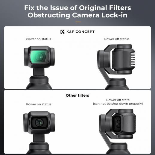 - * Magnetisk installasjon: Med det magnetiske systemet kan filteret installeres på Osmo Pocket 3-objektivet veldig raskt og enkelt.