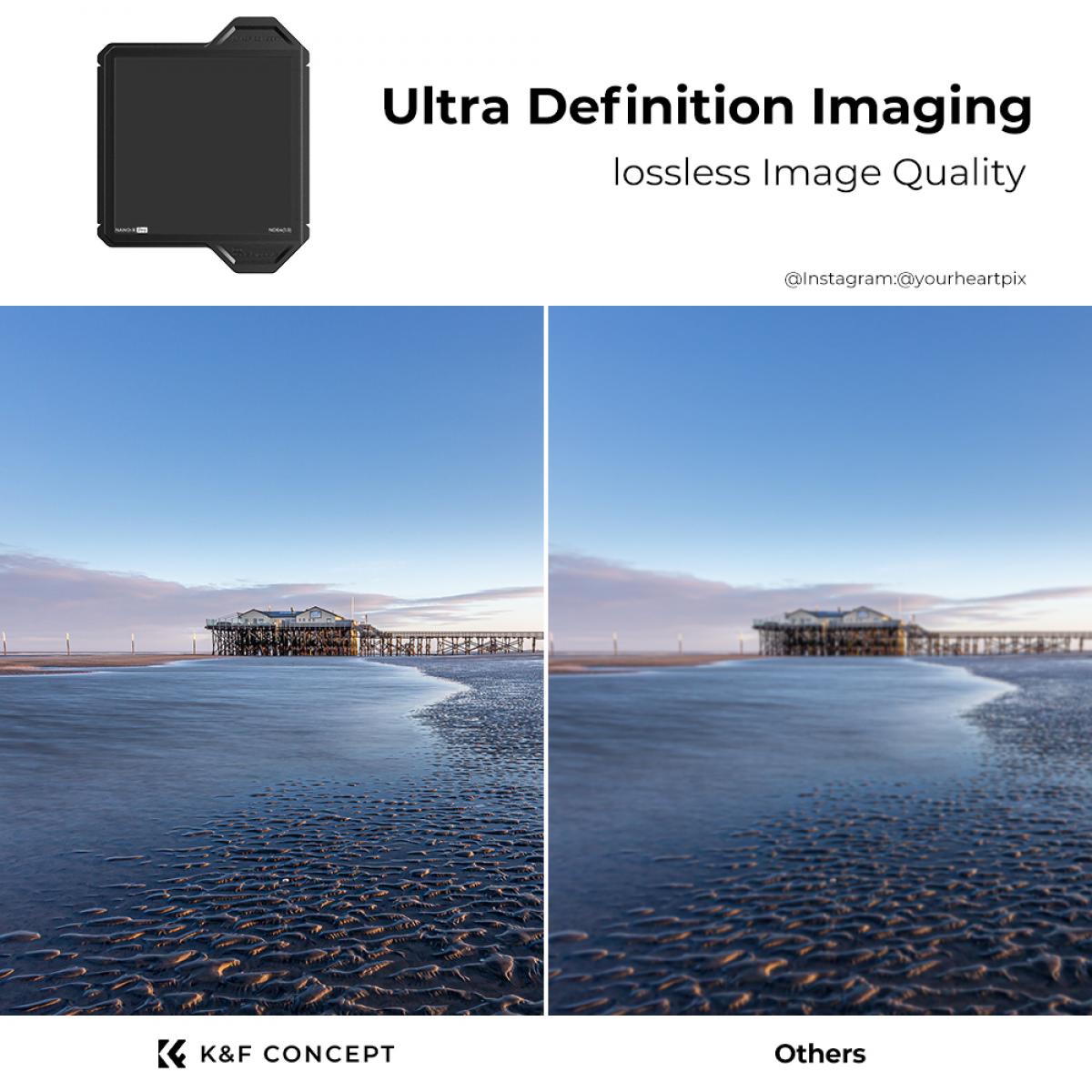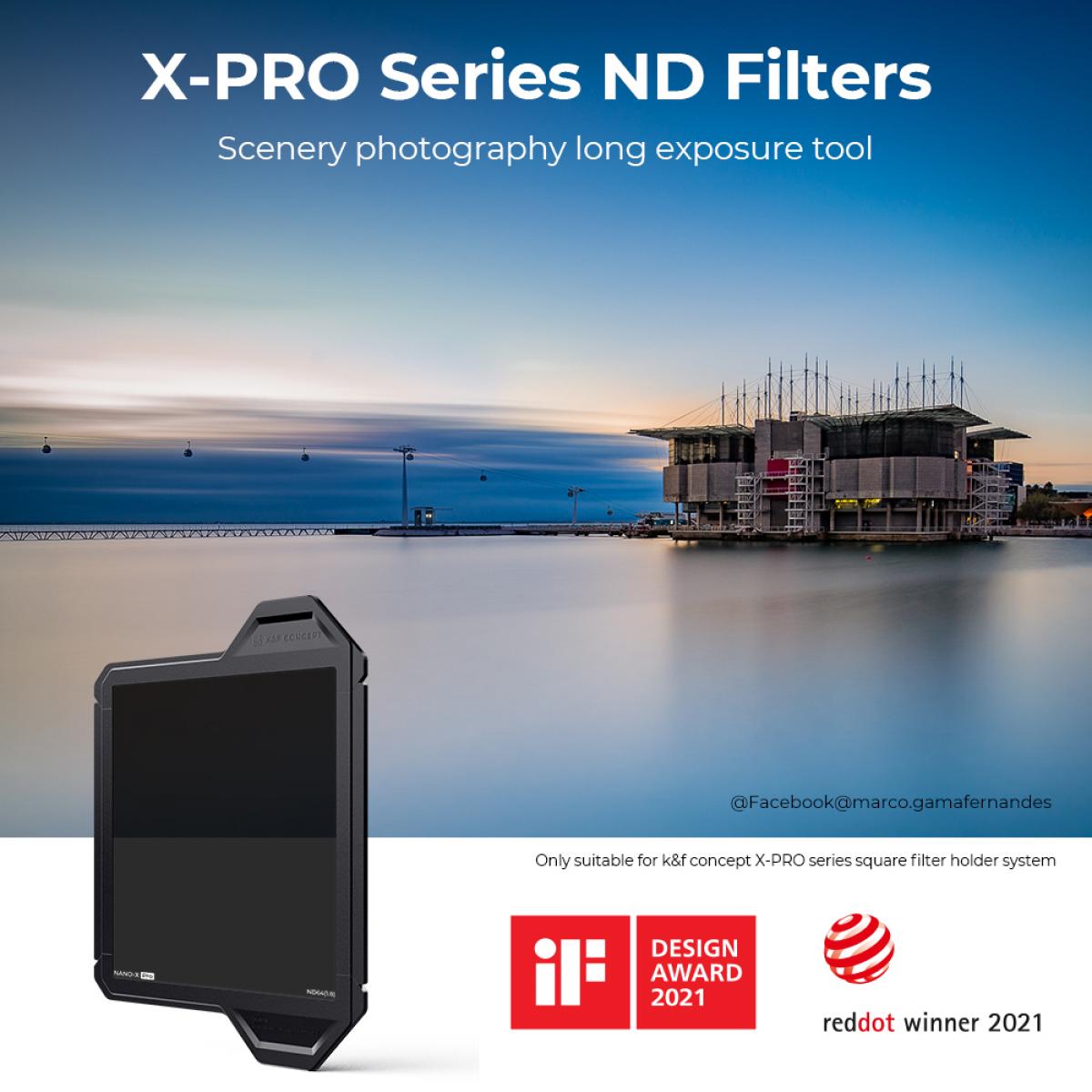 - * K&F Concept Pro Protective Frame vant iF DESIGN AWARD og Red Dot Design Award. Den firkantede filterrammen kan beskytte linsen mot å falle ned ved et uhell og ikke bli ødelagt (fall fra en høyde på 1,5 meter til en flat mark vil ikke gå i stykker, merk: innfatningen kan ikke beskytte linsen mot å falle på en skarp konveks overflate)