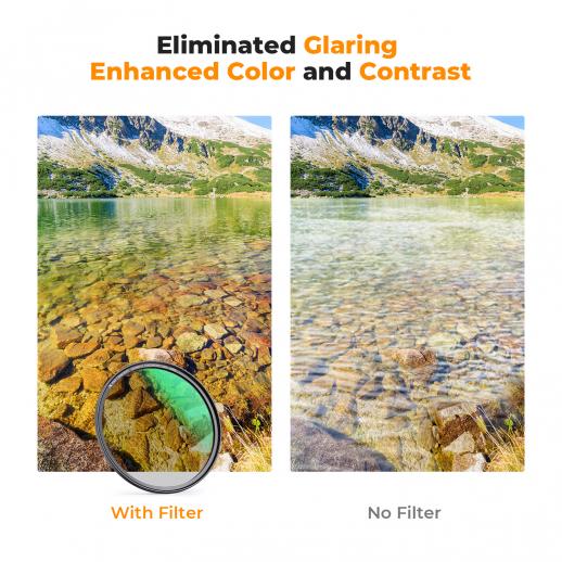 - * 【Forbedre farge og kontrast】 CPL-filtre lar deg fjerne uønskede refleksjoner fra ikke-metalliske overflater som vann, glass etc. Denne effekten brukes ofte for å øke kontrasten og metningen i blå himmel og hvite skyer.