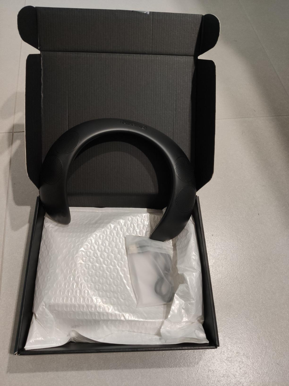 Jeg liker ideen bak disse bærbare høyttalerne veldig godt. De var litt for små for den store halsen min, men de passet, men var ikke komfortable for meg. Jeg endte opp med å gi dem til kona mi, som elsker dem! Lydkvaliteten var god, men den manglet virkelig bass (som man kan forvente med høyttalernes størrelse). Høyttaleren skaper en god surroundlydopplevelse med filmer og er overraskende god til dette (uten å riste hele huset). Paringen var enkel med smartenhetene våre, og lyden kunne høres veldig godt mens man hadde på seg høyttaleren, og proporsjonalt sett hørte de bare litt av den til andre i rommet. Radiofunksjonen var ikke veldig god, det er ikke lett å bytte stasjon, og mottaket var ikke veldig bra. Batterilevetiden er god, og generelt er det et godt, innovativt produkt som baner vei for fremtidig utvikling. Jeg tror dette ville være bra for VR, men jeg har ikke den andre teknologien for dette ennå. Alt i alt er jeg fornøyd med verdien, kvaliteten og lyden til dette produktet, og vil anbefale det til noen som ønsker å lytte til tingene sine rundt i huset, som ikke liker ting i ørene, men som liker «fri lyd» uten å forstyrre alle andre.