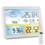 Værstasjonen Trådløs innendørs hjemmeværstasjon med atomklokke, digitalt værtermometer, temperaturfuktighetsmonitor Værmeldingsstasjon med månefase