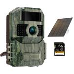 Solenergi Jaktkamera 48MP*4K Ultra HD Trådløst Viltkamera, Design med to Batterirom (6000 mAh Oppladbart Batteri + 3W Solcellepaneler) med 64g SD-Kort Grønn