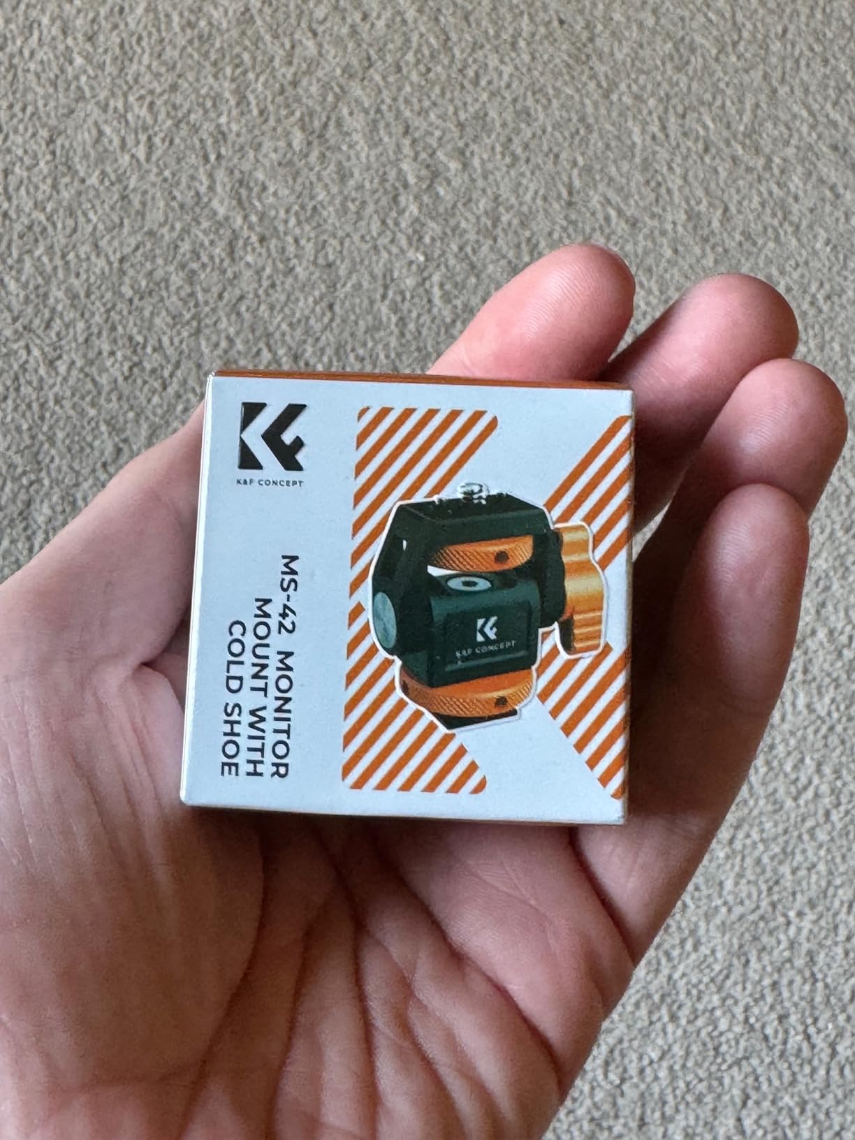 Holderen er designet for å feste ekstra kameramonitorer til selve kameraet eller til et kamerabur. Det er i hvert fall det jeg bruker den til. Merkevaren K&F Concept har lenge gjort et godt navn innen fototilbehør og imponerer med høykvalitetsprodukter. Dette er ikke annerledes med denne adapteren. Den er av høyeste kvalitet og, takket være de oransje anodiserte tommelskruene, ser den nesten ut som et designobjekt, noe som forbedrer kameramonitoren ytterligere. Den er veldig solid bygget og derfor ikke lett i forhold til andre adaptere. Tommelskruenes rifling er skinnende rent og har ingen grader. Trådene er også rent kuttet – ingenting fester seg eller sitter fast – veldig bra! Kameramonitoren kan svinges for å justere den optimale visningsvinkelen, noe som også fungerer veldig bra. Med en kjøpesum på 23,99 euro er adapteren fra K&F Concept en av de rimeligste adapterne her på Amazon. Foreløpig (04.04.2025) kan prisen fortsatt reduseres med 10 % med en kupong. Dette betyr at adapteren har et utmerket pris/ytelse-forhold, og jeg gir den 5 stjerner.