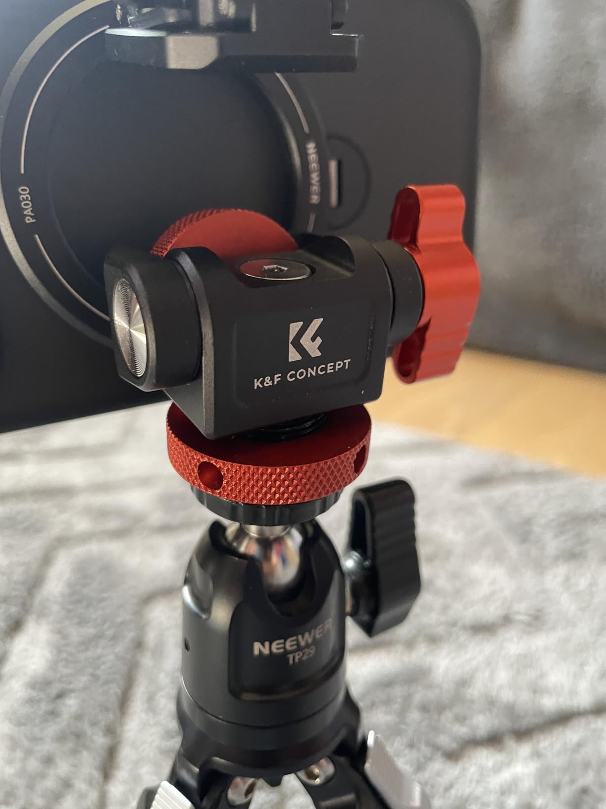 Kvaliteten er utmerket, som du forventer av et K&F Concept-produkt (som jeg har mange av). Jeg plukket den opp for et annet formål enn tiltenkt - for å sette den på ministativet, for å gi den litt mer tilt, for å gjøre det lettere å plassere utstyret mitt, enten det er en liten skjerm, lys eller Magsafe-telefonholderen min - uansett hva jeg kaster på den, takler den det veldig bra. Den er laget av materialer av høy kvalitet med tanke på brukervennlighet. Tommelskruene gjør det enkelt å feste enheter uten å måtte skru dem rundt en 1/4 tomme skrue. Tilten fungerer veldig jevnt, med friksjonen som kan justeres for å imøtekomme tyngre eller lettere vedlegg. Et solid stykke som jeg vil anbefale!