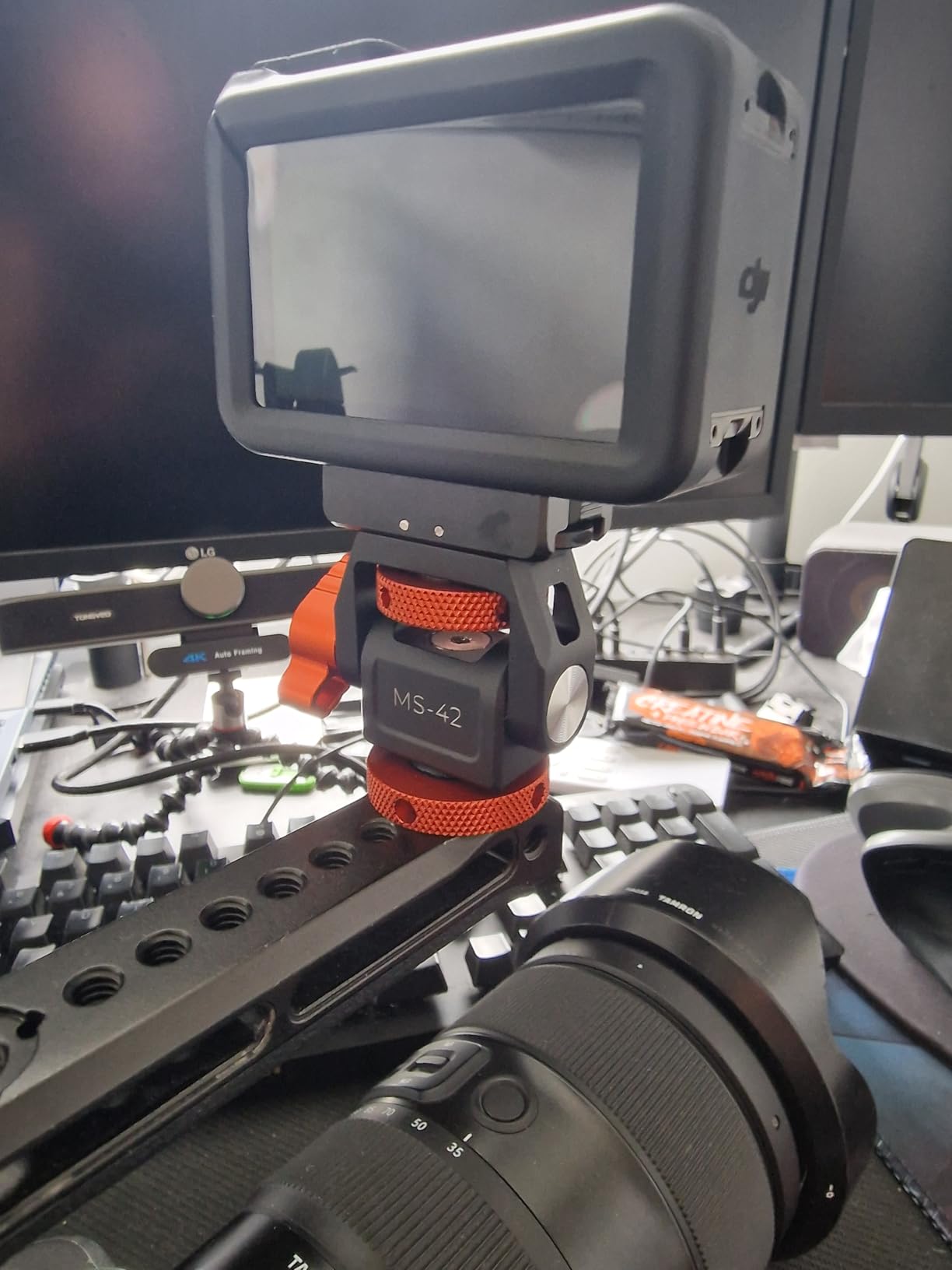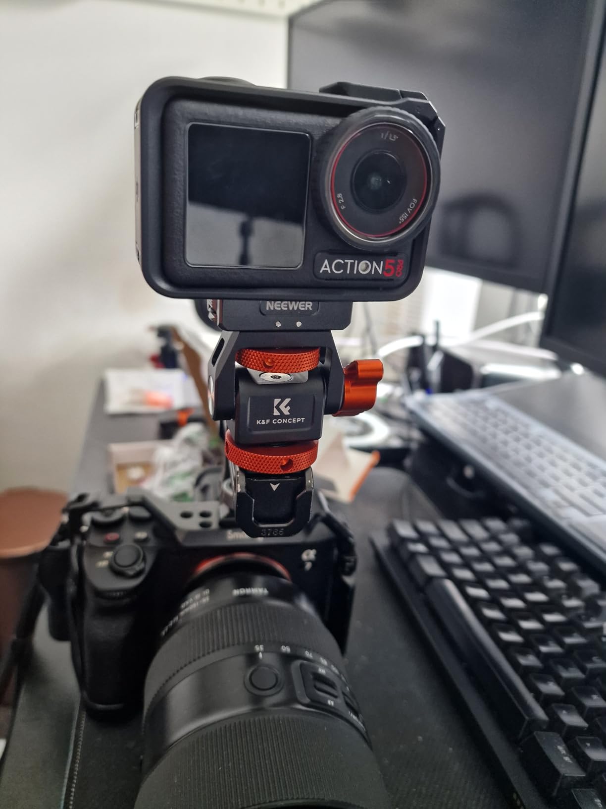 Jeg elsker K&F-designet, svart og oransje ser bare kult ut for meg. Jeg har massevis av K&F-tilbehør, fra stativ til filtre til adaptere og vedlegg, og jeg er glad jeg la til dette skjermfestet til arsenalet mitt. Det vil primært holde et DJI-actionkamera på toppen av Sony-buret mitt, slik at jeg kan filme mens jeg tar stillbilder. Det hele er laget av metall og føles riktig bygget. Justeringsknappen er flott, og jeg foretrekker den fremfor å justere med unbrakonøkler eller mindre knotter. Det er selvfølgelig litt tungt hvis vekten er et problem, men hvis du vil ha noe lett, trenger du noe laget av plast.